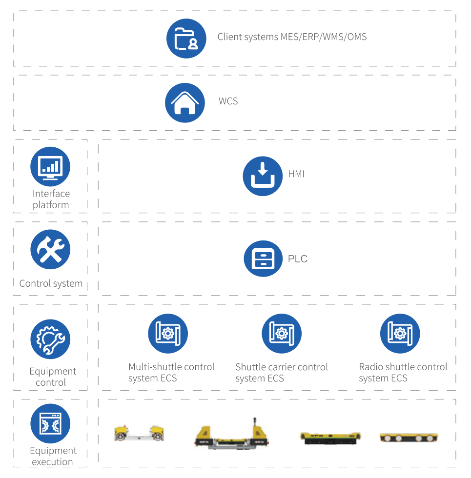 The WCS processes inbound and outbound instructions from the WMS by controlling, scheduling, and monitoring automated equipment in real time. It also performs route planning and task coordination to ensure precise, efficient, and synchronized system operations.