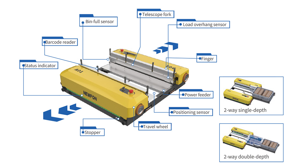 Our 2-way tote shuttle is a fast, intelligent handling robot designed for automated storage and retrieval of totes and cartons. It operates along two directions within racking aisles, enabling efficient picking, sorting, and replenishment. Seamlessly integrated with WMS and material handling systems, it supports high-throughput operations, making it ideal for e-commerce, pharmaceuticals, and retail distribution centers.